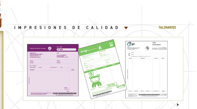 según pedido. Talonarios en blocks engomados, troquelados y puntillados, sueltos. Para completar en impresora, o manuales. Formularios Continuos. Todas las medidas y cortes especiales. Para controladora fiscal u otras impresoras. |